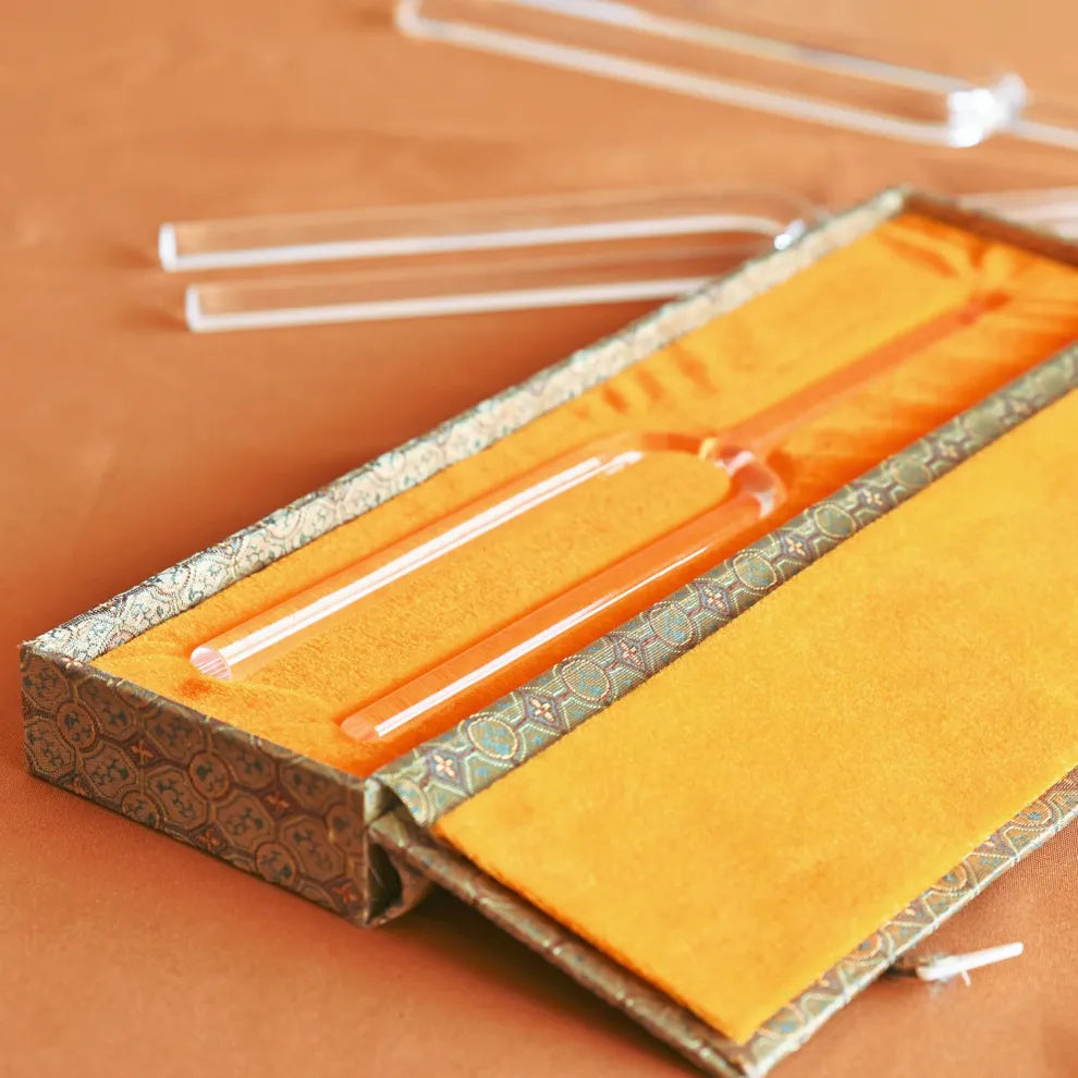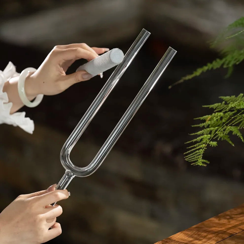 Our Crystal Tuning Forks are made of high-quality quartz. The use of crystal allows for very precise tuning, strong resonance with long sustain, and a clear, powerful tone.