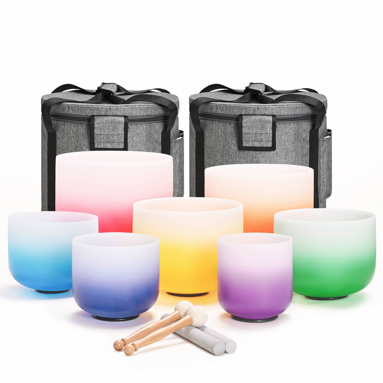 【Local House】CVNC 432Hz 6-12 Inch Aria Gradient Design Crystal Singing Bowl Set With Grey Bag