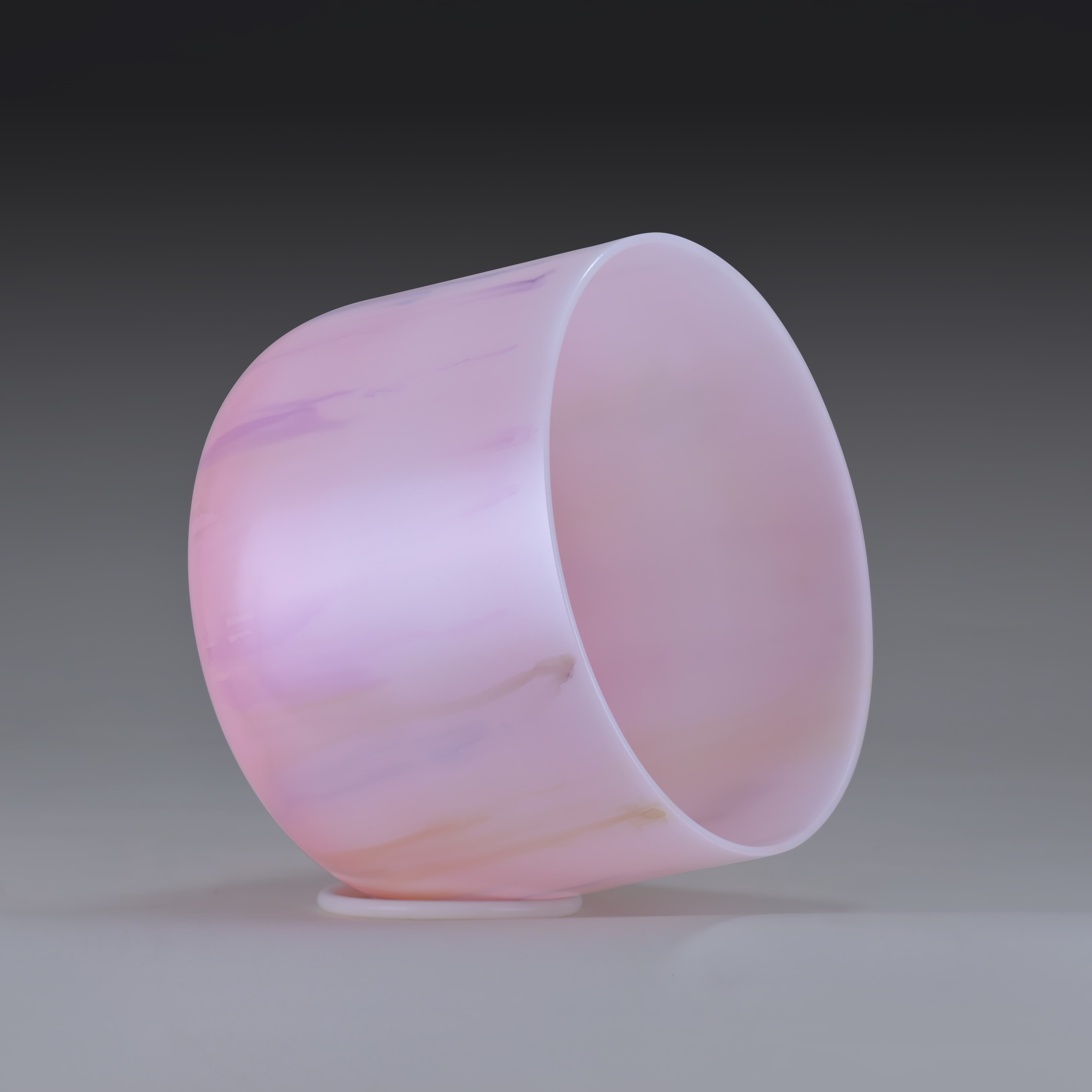 Crystal singing bowls are made from 99.9% pure Quartz crystal, a naturally occurring element. The fused crystal is heated to a temperature of over 4000 degrees and blown into shape in a process similar to hand blown glass. The process in which the alchemy singing bowls are manufactured general puts them in a lower octave range than bowls of the same size in the frosted style. The tone of alchemy singing bowls is pure and long lasting. Alchemy singing bowls are known for clean sound and great resonance.