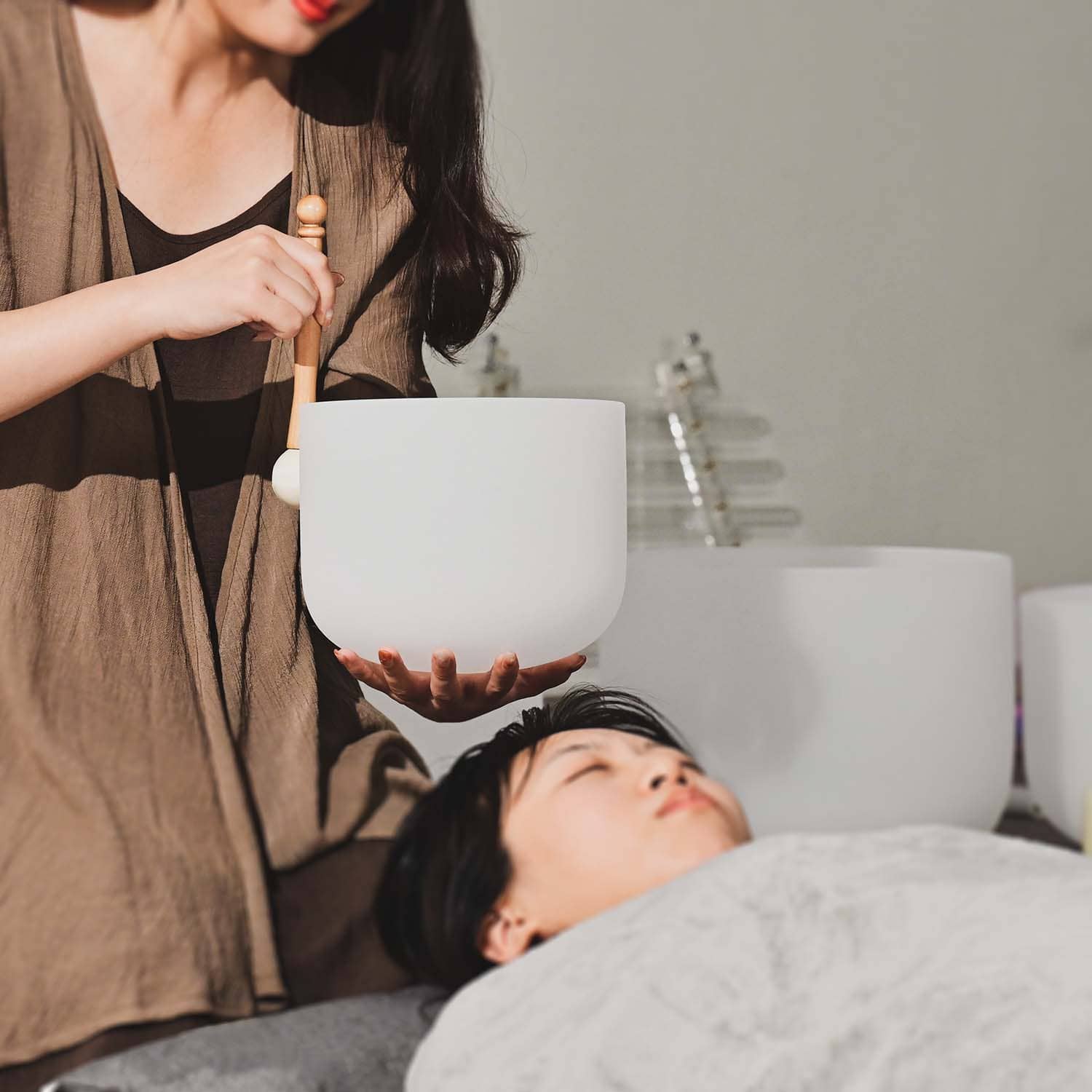 5. Professional music healing therapist makes targeted treatment of psychological and physical diseases by using a variety of sizes of crystal singing bowls, which is effective without side effects.