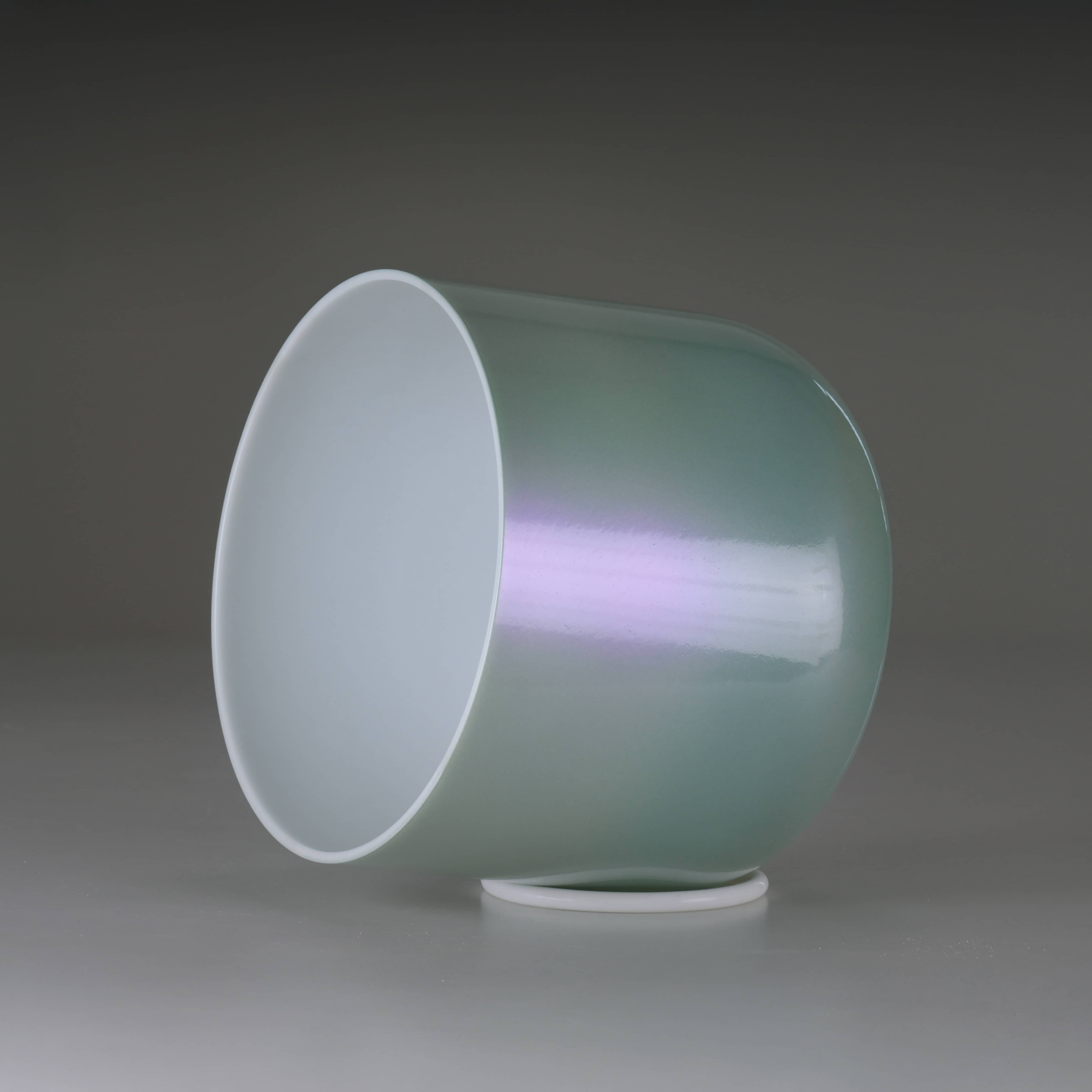 Compared to traditional frosted crystal singing bowls, the Empyrean Crystal Singing Bowl offers improvements in both sound purity and overall acoustic performance. Traditional frosted bowls have a rough surface, which tends to generate friction noise and shorten sustain. In contrast, the Empyrean bowl features a polished surface both inside and out, boasting a sleek, glass-like texture. This not only eliminates friction noise and extends sustain but also enhances both visual enjoyment and the overall auditory experience significantly.