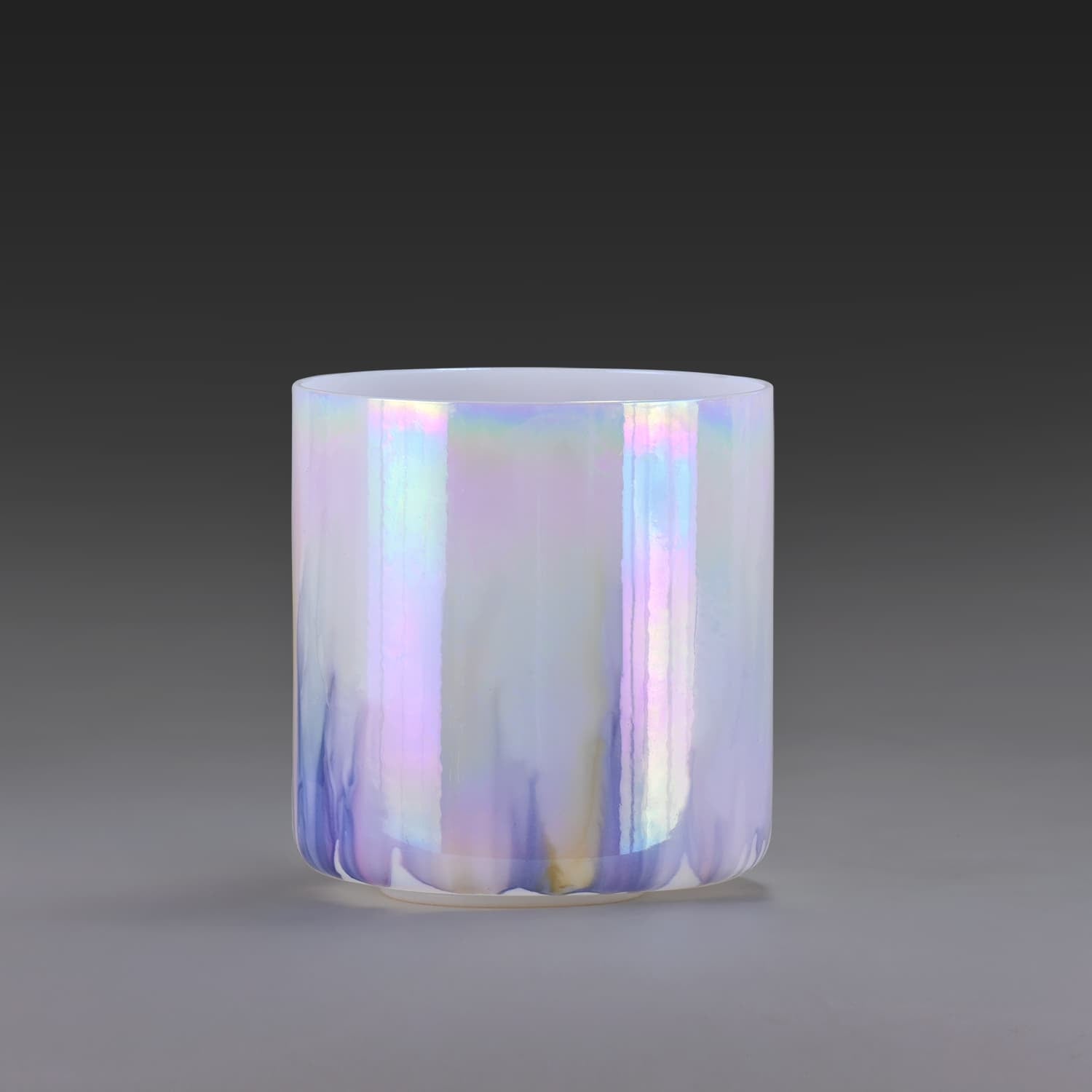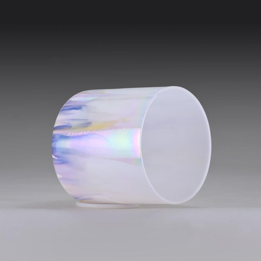 Crystal singing bowls are made from 99.9% pure Quartz crystal, a naturally occurring element. The fused crystal is heated to a temperature of over 4000 degrees and blown into shape in a process similar to hand blown glass. The process in which the alchemy singing bowls are manufactured general puts them in a lower octave range than bowls of the same size in the frosted style. The tone of alchemy singing bowls is pure and long lasting. Alchemy singing bowls are known for clean sound and great resonance.