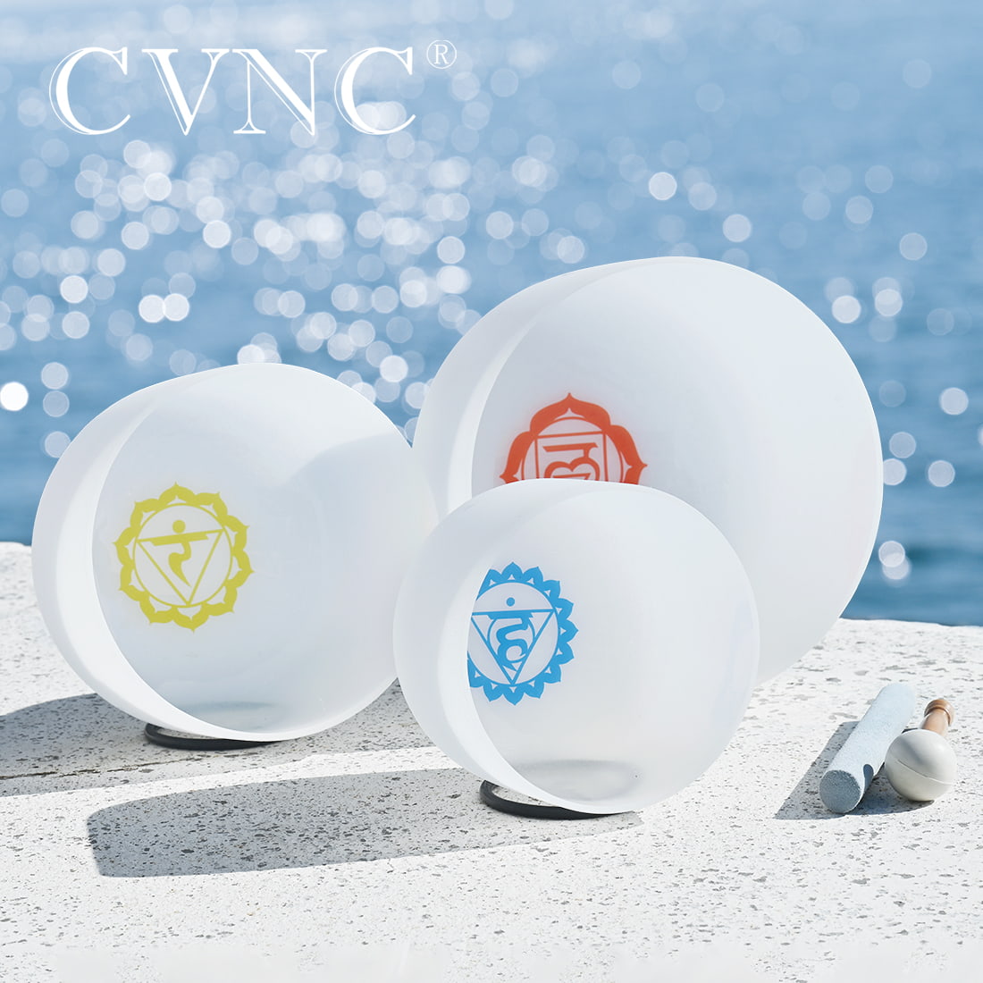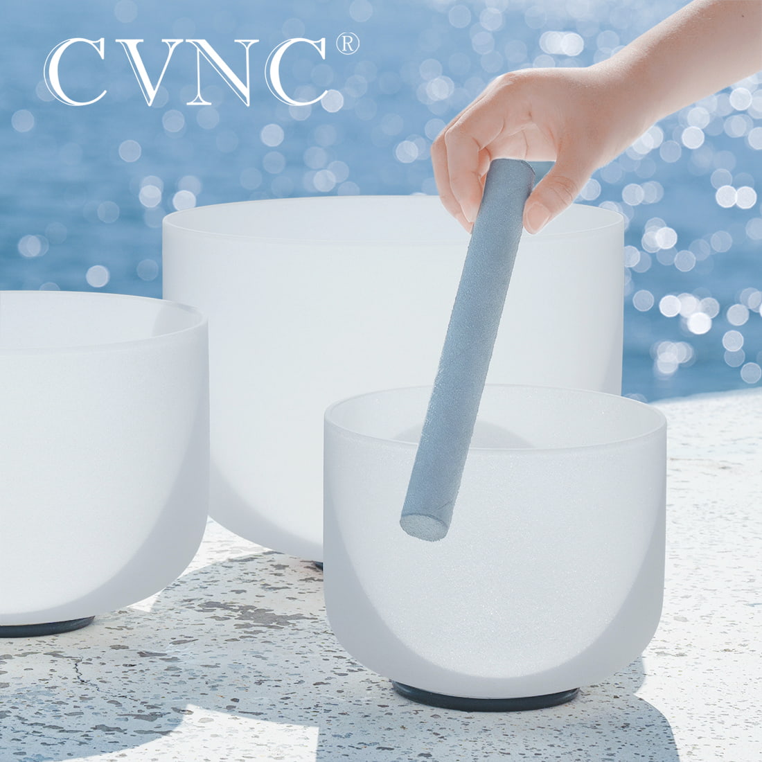 - This crystal singing bowl set is made from high quality quartz. CVNC crystal singing bowls have a translucent white. One rubber mallet, one suede mallet and three O-ring are packed inside for free.